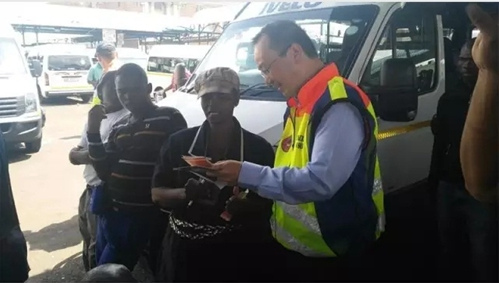 孫耀亨在Noord和Wanderers兩條街道交界的中巴車站的一個(gè)簡單的講臺前發(fā)表講話,呼吁人們共同協(xié)作,建設(shè)更安全的城市。