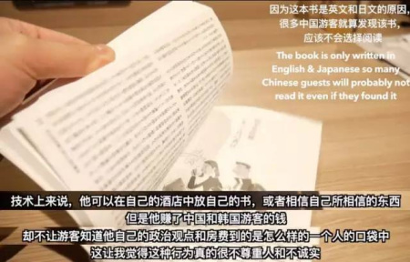 不過也有網(wǎng)友提到這一點,并質(zhì)問:“一個服務(wù)行業(yè)為什么要有這種有爭議的宣傳內(nèi)容,何況住宿很多客人都是中國人,讓人感覺很不禮貌。我已經(jīng)不計前嫌來日本了,在酒店里卻看到這種內(nèi)容……”