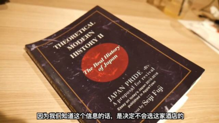這個酒店房間里擺著CEO元谷外志雄寫的《無法言說的國家論》、《自豪的祖國日本——為復(fù)興日本諫言》等右翼書籍。