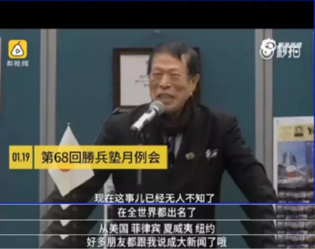 鏡頭前,元谷外志雄頗顯得意之色。