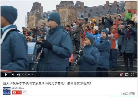 2016年的春節(jié),在首都渥太華國會山前,上演了由華人為主、其他族裔參演的相當有規(guī)模的中文快閃節(jié)目。