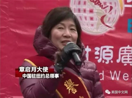 章啟月大使在游行前說,這是自己第三次來到中國農(nóng)歷新年花車游行的現(xiàn)場。她還用中文,英文和粵語同時(shí)送上了新春的祝福。她說,看到春節(jié)已經(jīng)成為了紐約生活文化的一部分,很高興各族裔民眾都加入到了慶祝中國新年的活動(dòng)中。章啟月大使表示,隨著去年春節(jié)成為了紐約公校假期,“歡樂中國”等一系列活動(dòng),讓春節(jié)已經(jīng)走入了紐約家家戶戶,民眾不僅僅知道也認(rèn)可了我們的節(jié)日。這是文化的包容性。