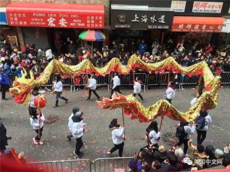 紐約華埠新春花車游行 舞龍舞獅熱鬧非凡(圖)