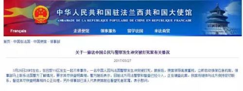 3月26日20時左右,在巴黎19區(qū)發(fā)生一起不幸事件,一名中國人因與法國警察發(fā)生沖突被打死。
