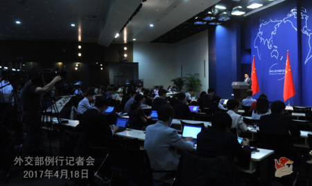 2017年4月18日外交部發(fā)言人陸慷主持例行記者會