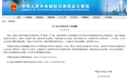 參與互動(dòng)國(guó)際在線專稿:4月18日,我國(guó)駐馬來(lái)西亞大使館在官網(wǎng)發(fā)出一則“關(guān)于赴馬來(lái)西亞務(wù)工的提醒”。文中提到,近期多次接獲中國(guó)赴馬來(lái)西亞勞務(wù)人員求助案。多數(shù)涉案勞務(wù)人員輕信國(guó)內(nèi)無(wú)對(duì)外勞務(wù)合作經(jīng)營(yíng)資格的勞務(wù)公司虛假宣傳,通過(guò)辦理旅游簽證赴馬非法務(wù)工。雖預(yù)交了高額中介費(fèi),但因無(wú)用工單位接收,不能辦理合法工作簽證,更無(wú)法獲取工資。對(duì)此大使館提醒赴馬勞務(wù)人員不要輕信非法勞務(wù)中介宣傳或個(gè)人承諾,要充分了解用工單位情況和工作內(nèi)容,選擇有對(duì)外勞務(wù)合作經(jīng)營(yíng)資格的企業(yè)并簽訂書面合同,辦理合法工作簽證。