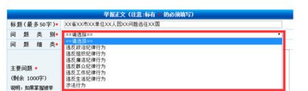 其次,在下拉框中選擇被舉報(bào)人的問題類別和問題細(xì)類。