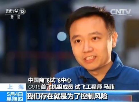 中國(guó)商飛試飛中心C919首飛機(jī)組成員 試飛工程師 馬菲:用我們機(jī)長(zhǎng)的話來(lái)說(shuō),可能比飛行學(xué)員開(kāi)得好一點(diǎn)。但是要成為一個(gè)試飛員承擔(dān)試 飛員,遠(yuǎn)不止會(huì)開(kāi)飛機(jī)那么簡(jiǎn)單。