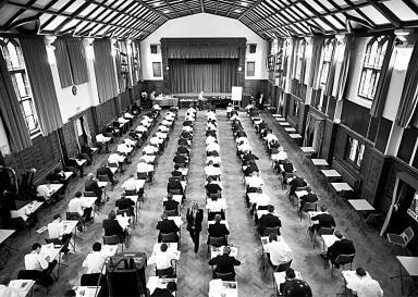 圖為一所文法學(xué)校學(xué)生參加考試的場(chǎng)景。資料圖片