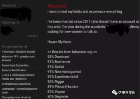 資料顯示,他還是“美國家庭暴力協(xié)會”(Domestic Discipline Society)和“誘拐101”(Abduction 101)的成員。