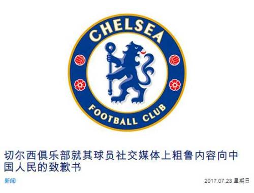 距離此評(píng)論發(fā)布大約20個(gè)小時(shí)后,英國(guó)切爾西俱樂部再次通過其官方網(wǎng)站向中國(guó)人民發(fā)表致歉書。