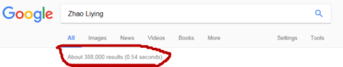 搜索中國影星趙麗穎,38萬搜索結(jié)果