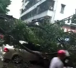 僑園路大樹倒塌壓住小車,導致現(xiàn)場交通擁堵!