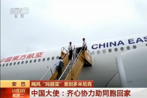 9月18日,五級(jí)颶風(fēng)“瑪麗亞”重創(chuàng)加勒比島國(guó)多米尼克。在當(dāng)?shù)毓ぷ?、居住的中?guó)公民的生命、財(cái)產(chǎn)安全受到威脅。在中國(guó)政府部門的積極協(xié)調(diào)之下,受困的幾百名中方人員先是被轉(zhuǎn)移到安提瓜和巴布達(dá)、也就是“安巴”,隨后乘包機(jī)回國(guó)。