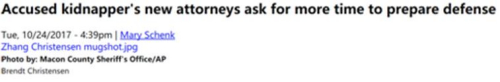 10月25日,據(jù)美國媒體《The News-Gazette》報道,涉嫌綁架致死中國訪問學(xué)者章瑩穎的嫌犯克里斯滕森(Brendt Christensen)的辯護律師稱,他們需要更充分的時間來為嫌犯準(zhǔn)備辯護,因此要求將案件的正式審理時間——2018年2月27日延后。
