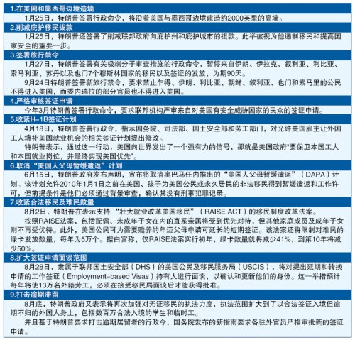 從今年1月特朗普上任以來,已經(jīng)如他選前承諾的那樣,對移民及簽證政策頻頻“開刀”: