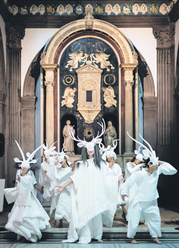 英國維多利亞及阿爾伯特博物館(Victoria and Albert Museum)于11月24日晚舉行以中國當(dāng)代藝術(shù)、設(shè)計(jì)以及社會(huì)潮流為主題的“中國之夜”文化活動(dòng)。英國華人藝術(shù)家、設(shè)計(jì)師徐蕊攜手11位當(dāng)代舞者在維多利亞及阿爾伯特博物館的Raphael Gallery為觀眾獻(xiàn)上一場表現(xiàn)羚羊族群生態(tài)的時(shí)尚舞蹈——《曠世絕塵的凝望:一場悲劇與希冀的旅程》。