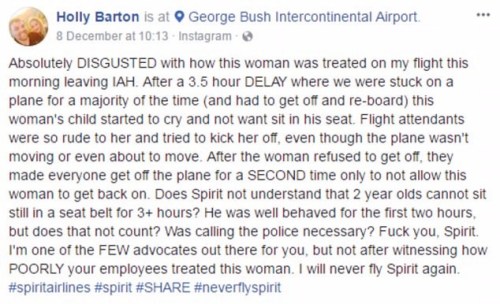 巴頓稱,當(dāng)這位女士拒絕下機(jī),精神航空命令所有乘客全部離開機(jī)艙,然后再次登機(jī),只是為了不讓這母子三人再登機(jī)。