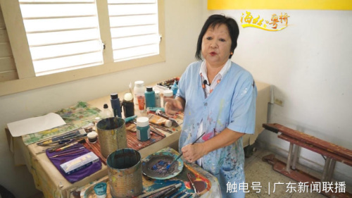 在距離武術(shù)學(xué)校十幾公里之外的新城區(qū),我們見(jiàn)到了另一位古巴知名華裔,畫(huà)家鄺秋云。她的父親是廣東臺(tái)山人,母親則是西班牙裔古巴人,但是鄺秋云并不會(huì)講漢語(yǔ),不過(guò),她對(duì)父輩的家鄉(xiāng)卻一直有著美好的憧憬。上世紀(jì)90年代回國(guó)省親后,中國(guó)文化激發(fā)了她新的創(chuàng)作靈感,將中國(guó)書(shū)法美學(xué)引入到畫(huà)面中,成為她近些年創(chuàng)作的特點(diǎn)。