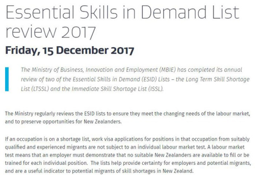 中國僑網(wǎng)1月11日電 據(jù)新西蘭天維網(wǎng)報道,新西蘭移民局官網(wǎng)于217年底悄然放出一則消息:新西蘭商業(yè)、創(chuàng)新與就業(yè)部已經(jīng)對技能短缺職位列表進行了更新,新規(guī)將于2018年2月生效。