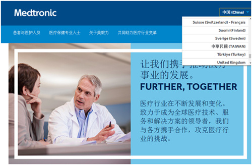 經(jīng)網(wǎng)友舉報(bào),環(huán)環(huán)查證,在美敦力的中文官網(wǎng)上,選擇國家的選項(xiàng)卡,也明顯把“中華民國(Taiwan)”與其他國家并列。