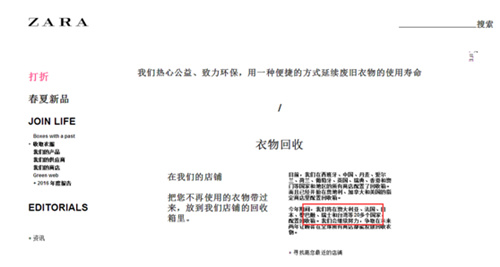 經(jīng)網(wǎng)友舉報(bào),環(huán)環(huán)查證,在ZARA的中文網(wǎng)站中,有衣服回收的選項(xiàng),然而在介紹中也將臺(tái)灣稱為“國家”。