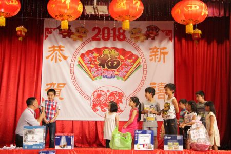 “旺旺旺……”,聯(lián)歡會中小朋友們用奶萌的聲音學(xué)著小狗叫,笑的觀眾們前俯后仰。據(jù)介紹,因今年是狗年,小狗的叫聲與中國人新年“旺旺旺”的心愿相似,故特意設(shè)置了該互動環(huán)節(jié),借此傳達對僑胞們“人旺、財旺、事業(yè)旺”的祝福?;顒又兄鞒秩诉€特別向廣大僑胞介紹了2018年在通惠總局大禮堂的活動計劃,如廣場舞、卡拉OK,希望有興趣的僑胞踴躍參加。