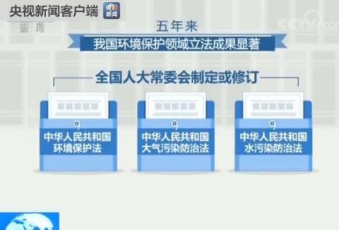 五年來,我國環(huán)境保護領(lǐng)域立法成果顯著,全國人大常委會制定或者修訂了《環(huán)境保護法》、《大氣污染防治法》、《水污染防治法》(《野生動物保護法)等有關(guān)生態(tài)文明建設(shè)的法律近20部。為環(huán)境保護、污染防治提供了堅實的法律保障。