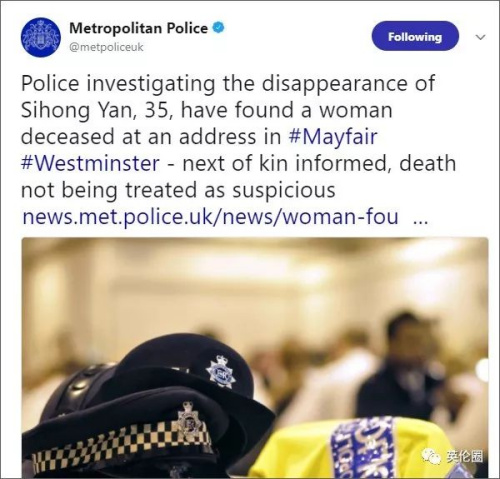 海外網(wǎng)3月1日電根據(jù)倫敦警察廳(Metropolitan Police)于當?shù)貢r間2月28日中午12:00左右公布在官方網(wǎng)站、推特上的消息,警方在倫敦市中心梅菲爾地區(qū)一處住宅內發(fā)現(xiàn)了一具女性尸體,警方相信就是閆同學,并已通知其家屬;目前暫時認為其死亡原因沒有可疑之處。