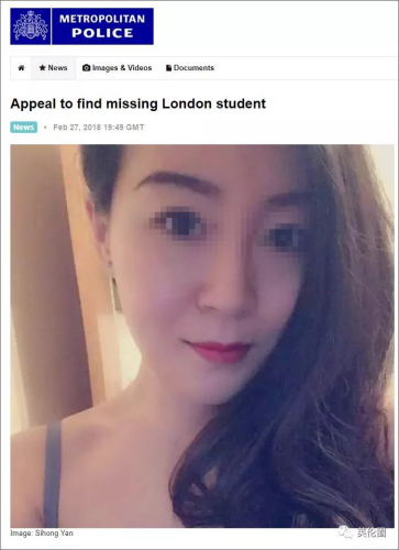 倫敦失聯(lián)中國女生遺體已找到 警方初步排除他殺