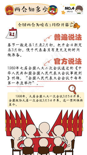 一種較為普遍的說法是,因為春節(jié)一般是在1月底2月初,把開會日期定在3月初,便于代表委員有更充足的時間做準備。
