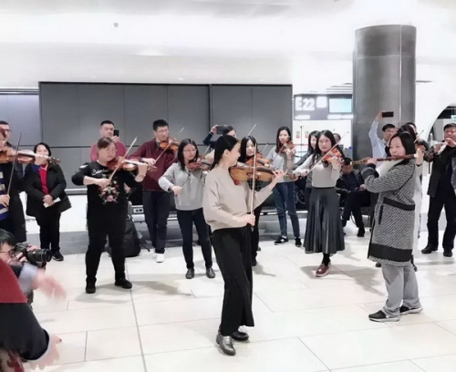 在上海的地鐵和商場,上海城市交響樂團也做過快閃,然而機場快閃還是第一次。