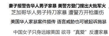 家庭暴力在任何國家都是不可忽視的社會問題,海外華人家庭發(fā)生家暴事件早已屢見不鮮,隨便翻一翻新聞便能找到許多報道: