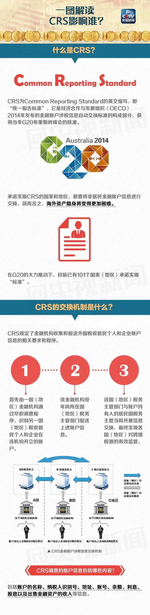 這意味著,中國(guó)稅收居民在境外101個(gè)國(guó)家和地區(qū)的賬戶信息將被稅務(wù)機(jī)關(guān)清楚掌握,而外國(guó)稅收居民在中國(guó)的賬戶信息也將由我國(guó)稅務(wù)機(jī)關(guān)掌握。