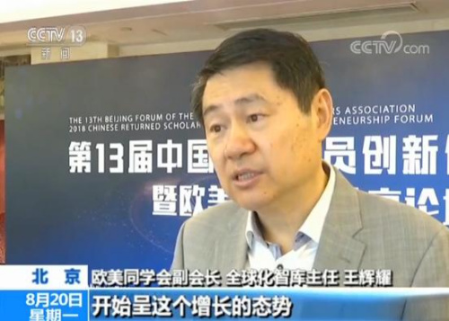 歐美同學會副會長 全球化智庫主任 王輝耀:現(xiàn)在回來的90后、甚至95后,開始呈這個增長的態(tài)勢,既反映了這個留學潮,也反映了這個海歸潮。那么中國留學生的這種大進大出,每年有六十多萬留學生出去,有五十多萬留學生回來,形成了中國獨特的一個人才環(huán)流的現(xiàn)象。