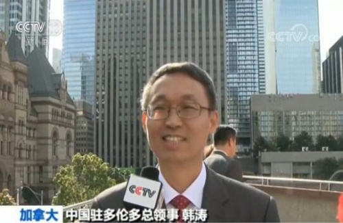 中國駐多倫多總領(lǐng)事 韓濤:上世紀(jì)八十年代,第一次出國的時(shí)候,那個(gè)時(shí)候在國外很少有機(jī)會(huì)參加這種升旗儀式?,F(xiàn)在不一樣了,現(xiàn)在在加拿大,在多倫多、密西沙加、旺市,還有列治文山市、萬錦,他們都要搞(升旗儀式),我都會(huì)去參加。