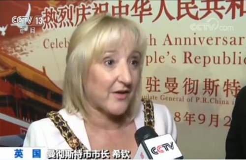 曼徹斯特市市長 希欽:我們擁有著榮譽(yù)和優(yōu)勢(shì),因?yàn)?50年來,我們曼徹斯特都與中國有著聯(lián)系,這是多棒的一件事。而現(xiàn)在我們又共慶(新中國成立)69周年,多好啊。