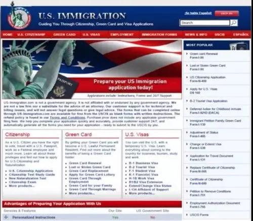 仔細(xì)觀察這些網(wǎng)站,他們會(huì)使用“美國(guó)移民”、“公民身份”和“綠卡”等關(guān)鍵詞來(lái)吸引潛在客戶。