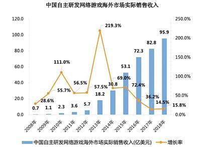 圖為中國自主研發(fā)網(wǎng)絡(luò)游戲海外市場實際銷售收入。