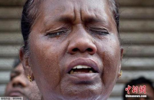 圖為當地時間4月23日,一名婦女在斯里蘭卡爆炸案全國哀悼日的悼念活動中淚流滿面。