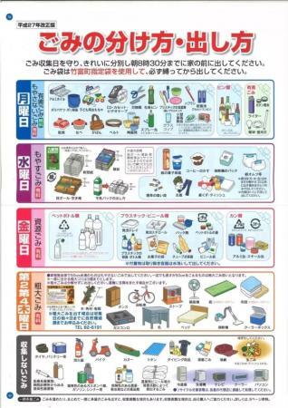 對于不同類型的垃圾,日本政府規(guī)定了相應(yīng)的回收日期和時(shí)間。每天收的垃圾種類不同,而且一般早上8點(diǎn)半就結(jié)束了。