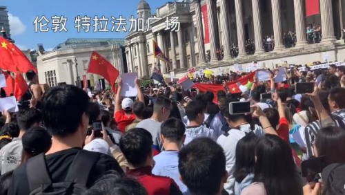 當(dāng)?shù)貢r間17日,在英國倫敦和愛丁堡的當(dāng)?shù)貎S胞和中國留學(xué)生自發(fā)上街應(yīng)對香港激進(jìn)示威者集會。學(xué)生們高唱國歌,喊出“反對暴力”、“一個中國”、“我們愛中國,我們愛香港”的口號。
