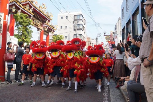 此次游行,橫濱山手中華學校陣容強大,不僅全校師生參與其中,學校家長會、校友會也踴躍報名,表演隊列包括獅子舞、舞龍、民族舞、扇子舞、腰鼓等。橫濱山手中華學校700多人的隊伍成為整場游行活動的主力。