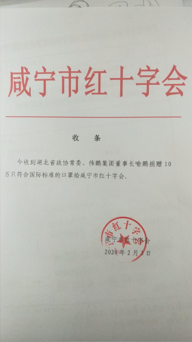 他還于第一時(shí)間出資1000余萬元,其中:100萬元捐贈(zèng)武漢市東湖新技術(shù)開發(fā)區(qū)紅十字會,100萬元助力武漢亞心總醫(yī)院一線醫(yī)護(hù)人員抗擊新型冠狀肺炎,捐贈(zèng)超過800萬元物資用于武漢市東湖新技術(shù)開發(fā)區(qū)、江夏區(qū)、湖北省黃岡市、團(tuán)風(fēng)縣等地區(qū)疾病防控中心,專門用于支持預(yù)防新型冠狀病毒感染的肺炎疫情工作。目前已向江夏區(qū)疾病預(yù)防控制中心捐贈(zèng)10萬只口罩,向黃岡市團(tuán)風(fēng)縣新型冠狀病毒感染的肺炎防治工作指揮部和團(tuán)風(fēng)縣紅十字會捐贈(zèng)10萬只口罩,向孝感市慈善總會捐贈(zèng)20萬只口罩,至此,喻鵬主席馳援家鄉(xiāng)疫情一線醫(yī)護(hù)人員和工作者的50萬只口罩已全部落實(shí)到位。