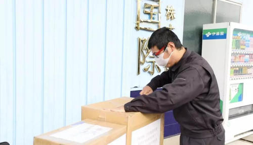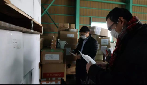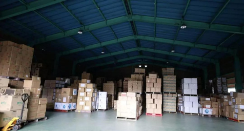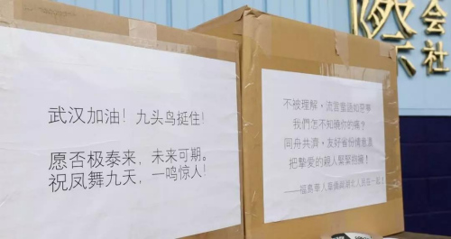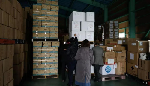 物資箱外貼滿了支援的武漢的標(biāo)語,2月4日,這批物資入庫埼玉縣的物流倉庫。等待7日送往武漢。