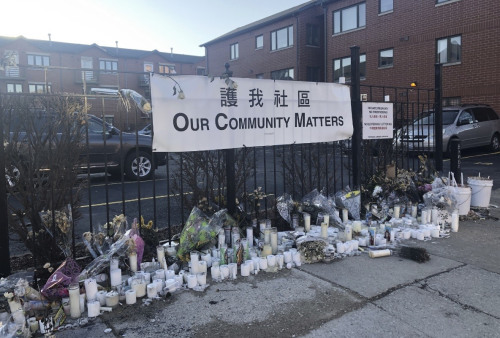 民眾自發(fā)給在2月9號(hào)凌晨無(wú)辜喪命的兩位華裔送上蠟燭和鮮花。(圖片來(lái)源:美國(guó)中文網(wǎng)/邱洪輝攝)