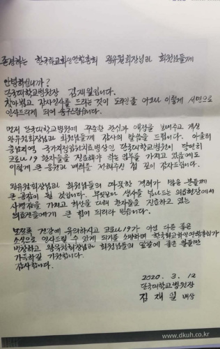 韓國(guó)檀國(guó)大學(xué)醫(yī)院院長(zhǎng)致信華僑華人聯(lián)合總會(huì)表感謝