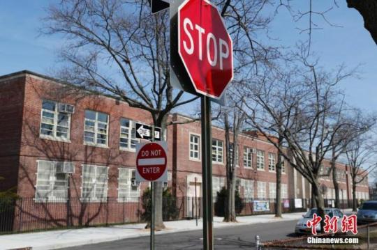 圖為美國(guó)紐約市皇后區(qū)一間關(guān)閉中的公立學(xué)校。 中新社記者 廖攀 攝