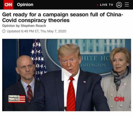 隨后美國媒體更是得到了共和黨一份57頁的“新冠病毒大全”,將以上內(nèi)容囊括其中?!肮糁袊币廊怀蔀榱斯埠忘h的選舉策略。CNN在5月7日就評(píng)論,“準(zhǔn)備好,今年大選季將充滿中國和新冠肺炎的陰謀論?!?/strong>