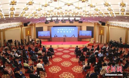 5月21日,十三屆全國人大三次會議新聞發(fā)布會在北京人民大會堂新聞發(fā)布廳舉行,新聞發(fā)布會采用網(wǎng)絡(luò)視頻形式進(jìn)行。中新社記者 杜洋 攝